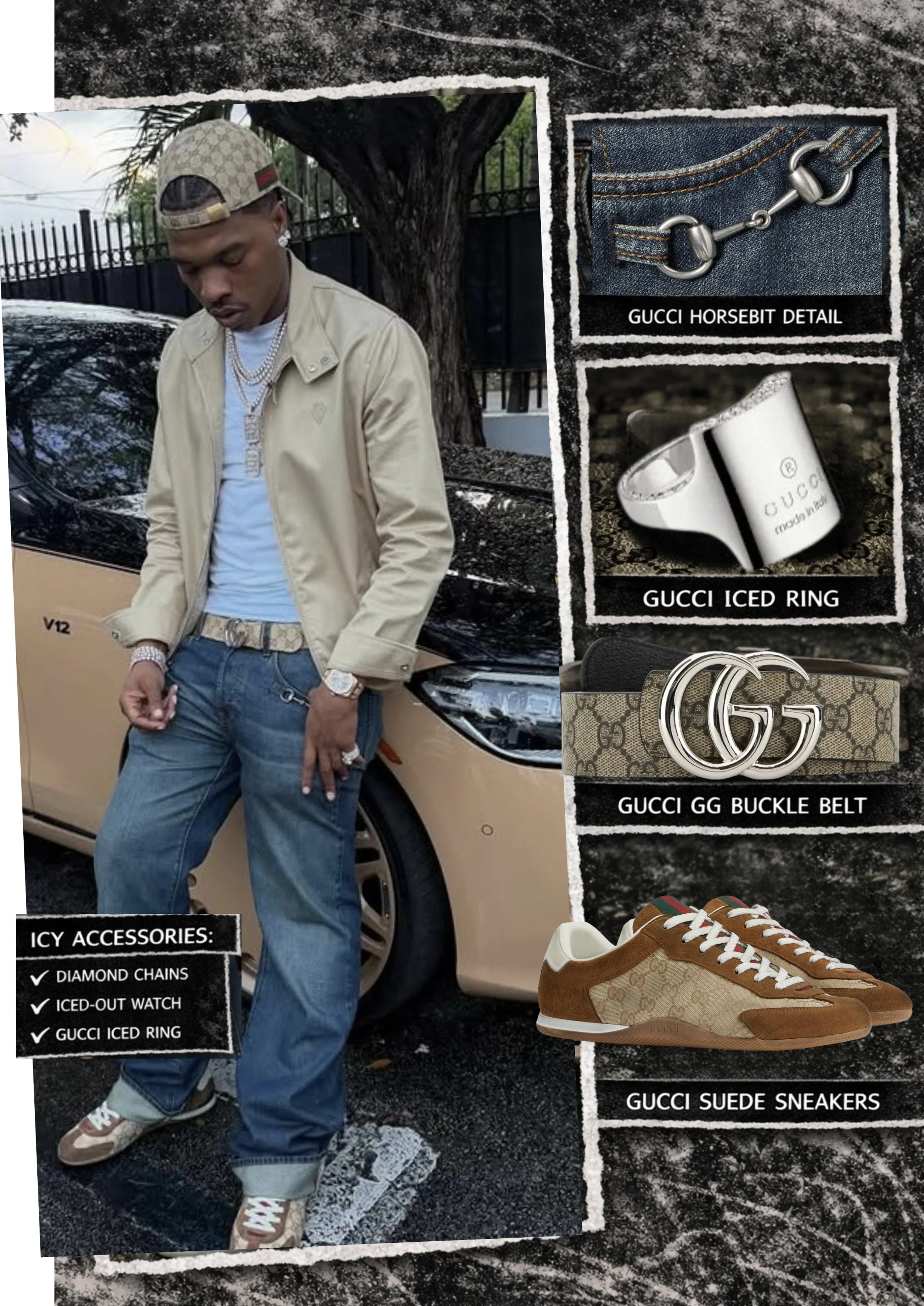 #GUCCIAURA is really about that exact tension: heritage branding, modern silhouette, icy accents, and an easy confidence that does not need extra noise. Lil Baby taps into that perfectly here, proving once again that the strongest luxury looks are often the ones that stay cool, controlled, and detail-driven.